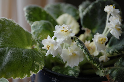 Mom’s african violets appear to be doing well.