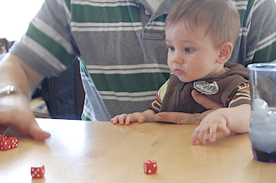 He sure has his eye on those dice!