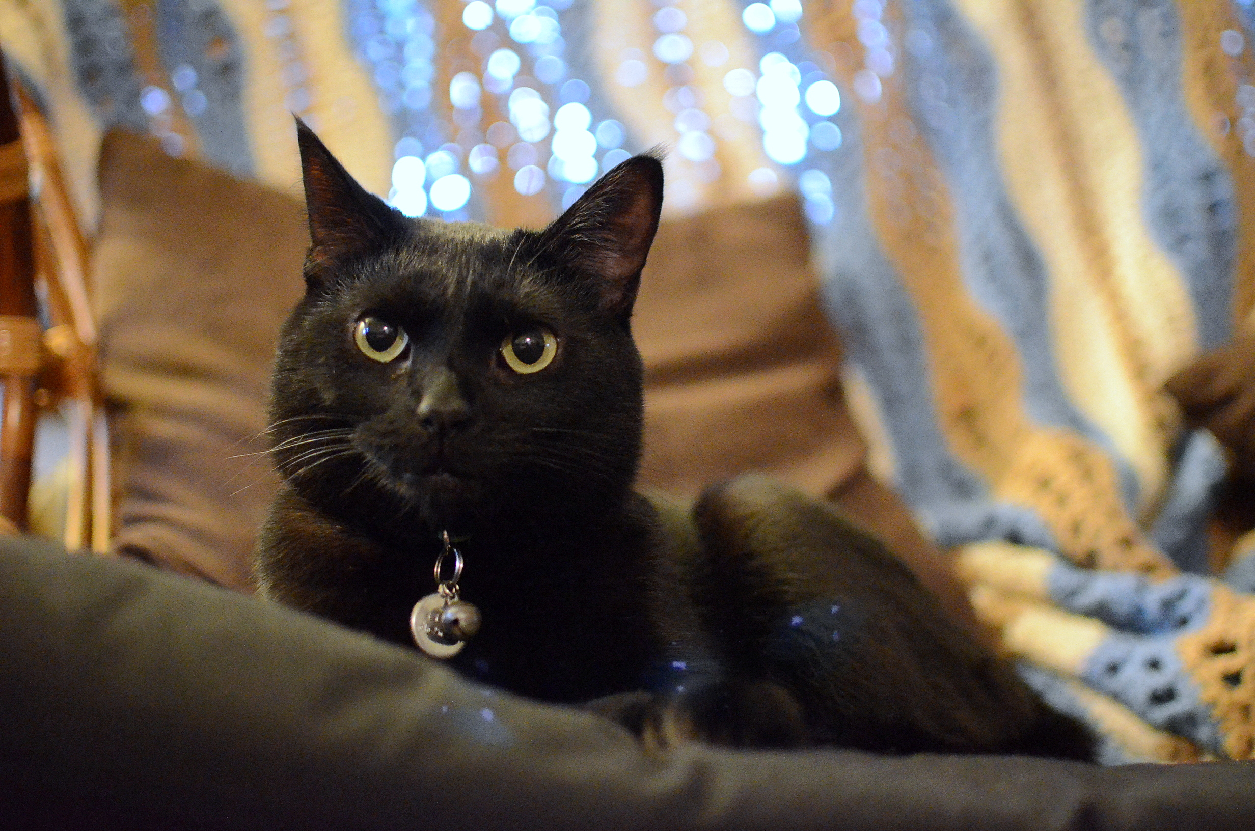 Kira (our grey kitty) is often featured on this blog, and not so much our other kitty, Coda! Why the bias? Photos of Coda often turn out poorly. Her fur is so dark that you sometimes cannot make out any of her features in the photo, other than her glowing eyeballs!
